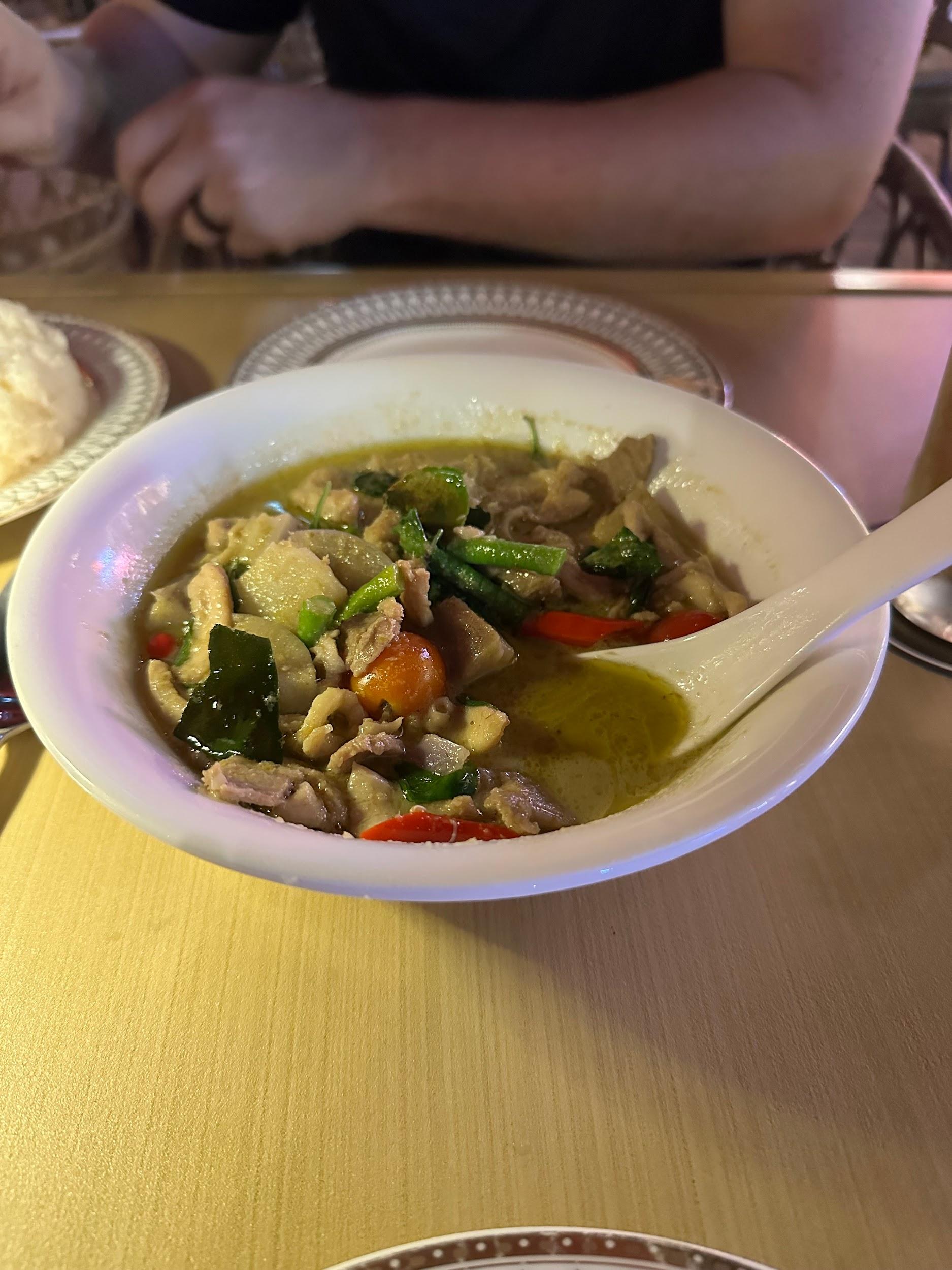 Delicious Thai food with a great view of the river. This strip has a ton of restaurants and is always busy!